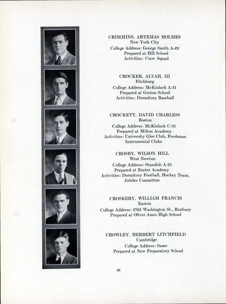 This is a page from the Harvard Yearbook Class of 1932. One of the young men was my neighbor a few years later.