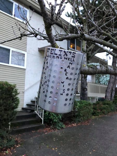 East Ballard neighbor, Roxanne Baechler-Gill’s five-year-old really wants to be a wizard, and a wishing well somehow figures into this. Accordingly, they have posted a wishing well on a tree outside their house, just across from Gemenskap Park (near NW 59th on the west side). If you’re nearby, please consider dropping a coin and/or a written wish (for anything you want!) to assist a child’s wizardly wish-granting dreams! They’re checking the wishing well every morning, just in case there are any wishes to grant.