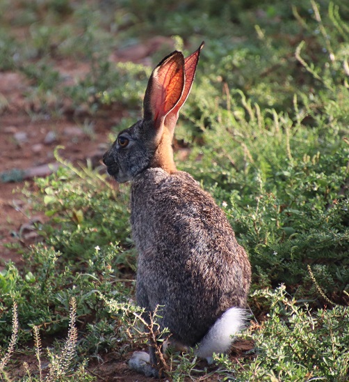Please tell me you have read Watership Down by Richard Adams! Even if you haven’t, you might be familiar with silflay for this word from Lapine, the fictional rabbit language he uses, means ‘to feed’. More precisely, to come out [from their burrows] to feed. I recently showed a photograph of a Scrub Hare with its long ears highlighted by the sun: