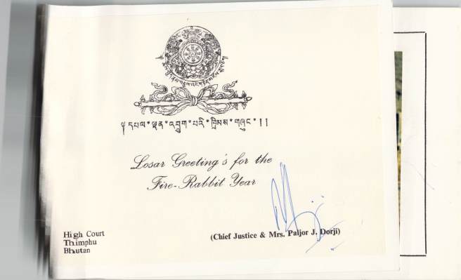 This was a card sent by the Chief Justice of Bhutan. Losar Greetings for the Fire-Rabbit Year