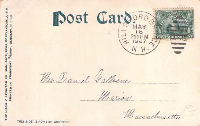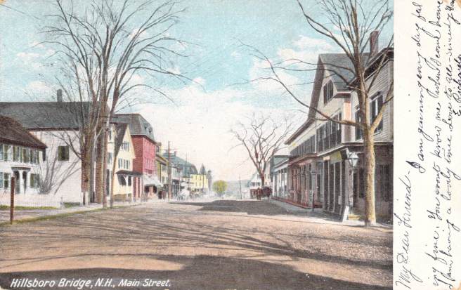 Have you ever seen a more deserted Main Street? Here it is – an old postcard of Hillsboro Big New Hampshire. A postcard with hardly room for a message.