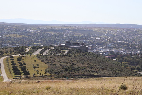 A little further on we can look down on the back end of the 1820 Settlers Monument (simply known as The Monument) and its beautiful surrounds with Grahamstown stretching out below: