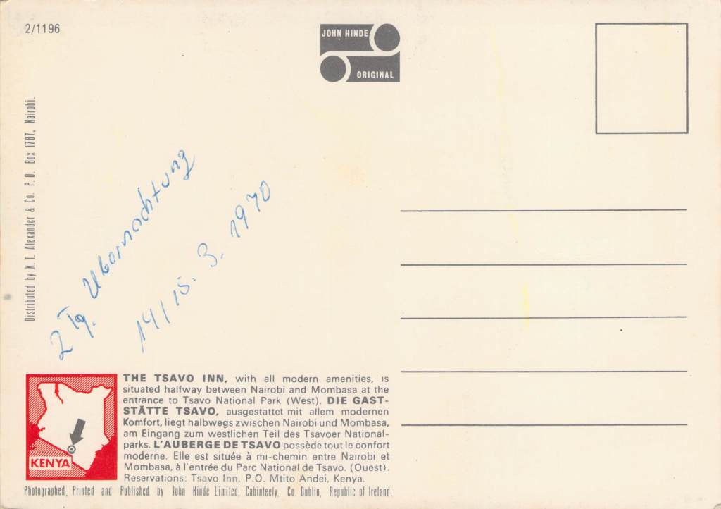 The Tsavo Inn was a halfway point on the drive from Nairobi to Mombasa. I remember that halfway point for all the weaver birds busy weaving their nests.