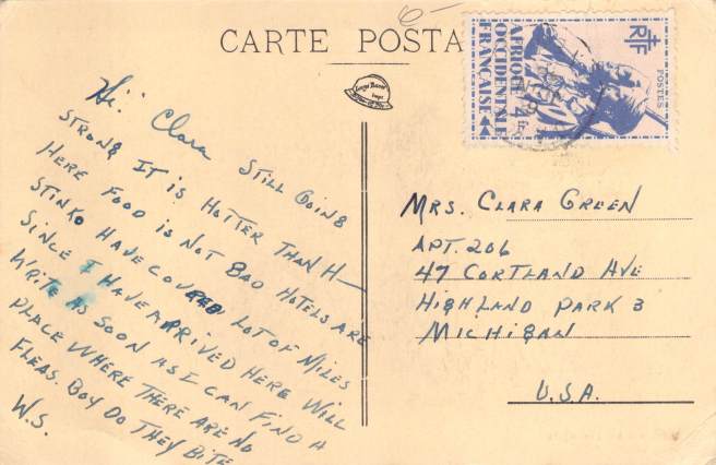 This is a “curious” postcard from Senegal. It is not a color card, nor is it a traditional black and white. Would you call it sepia? I can’t make out the postmark to put any sort of date to it, but to me it looks “old” – pre-19030’s?