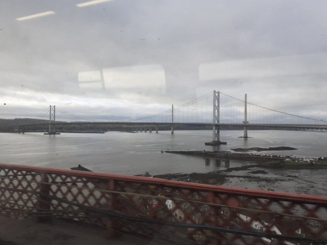 Not a great shot but the start of our day. It’s taken from the Forth Rail Bridge with the Forth Road Bridge and newish Queensferry crossing beyond.