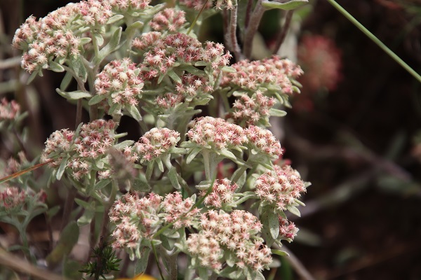 A different variety of creamy flowers form much thicker clumps further along the road.