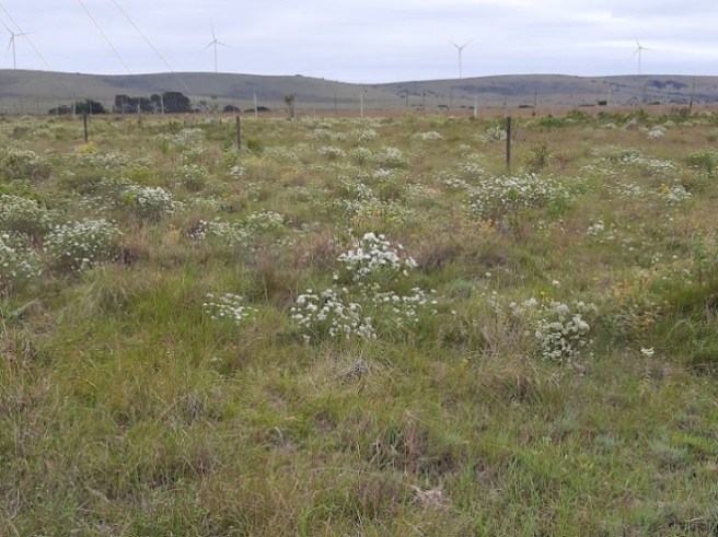 I have devoted several posts lately to the beautiful display of indigenous yellow flowers that have brightened the veld this spring. These are gradually losing their lustre and are being replaced by a variety of cream, creamy-white or white flowers. This is what the open veld on the edge of town looked like on my walk on Friday morning.