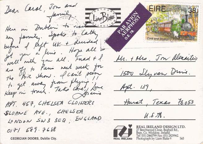 1970’s (?). I’ll have to check on that date. It’s a pity the postmark is not clear. Research on he stamp might give a clue.