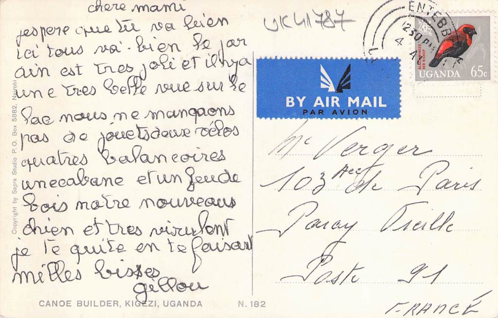 Note – this postcard was posted from Entebbe Uganda and dated 1987(?)