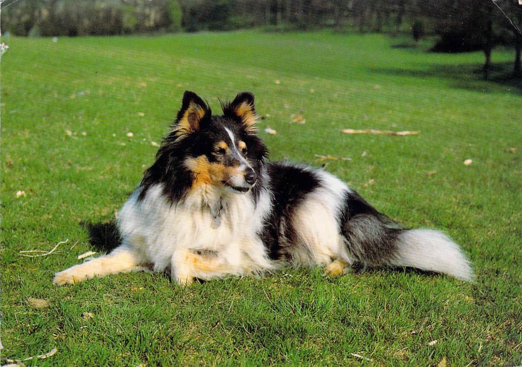 A postcard I sent to my sister Ruth 20 years ago. We shared a love of all breeds of dogs but especially of Collies, dating back to our childhood – even when a friend’s Collie snapped at me after my sisters had been gushing all over it. This postcard of a Shetland Sheep Dog was the nearest card I could find at the time, April 2002.