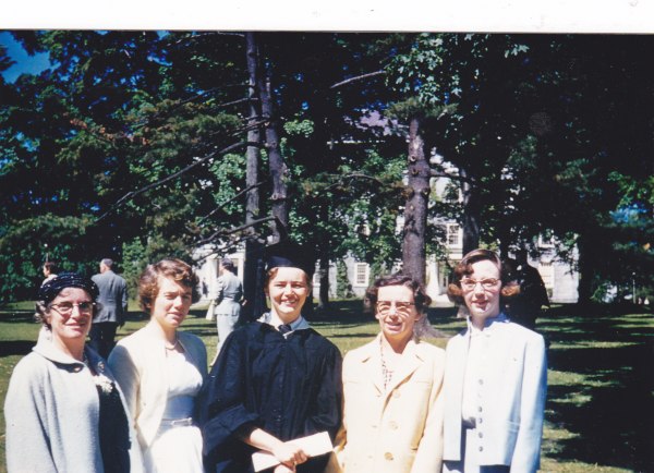 My Aunt Libby, Cousin Betsy, Janet the graduate, my mother, my sister-in-law Lil, June 1958