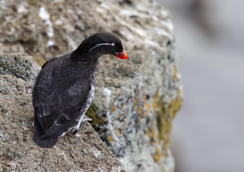 We’re continuing to look at Alcids, one of the families of small, diving seabirds of the Northern Hemisphere. This is the first auklet we’ll look at, the Parakeet Auklet, a species of the North Pacific Ocean.