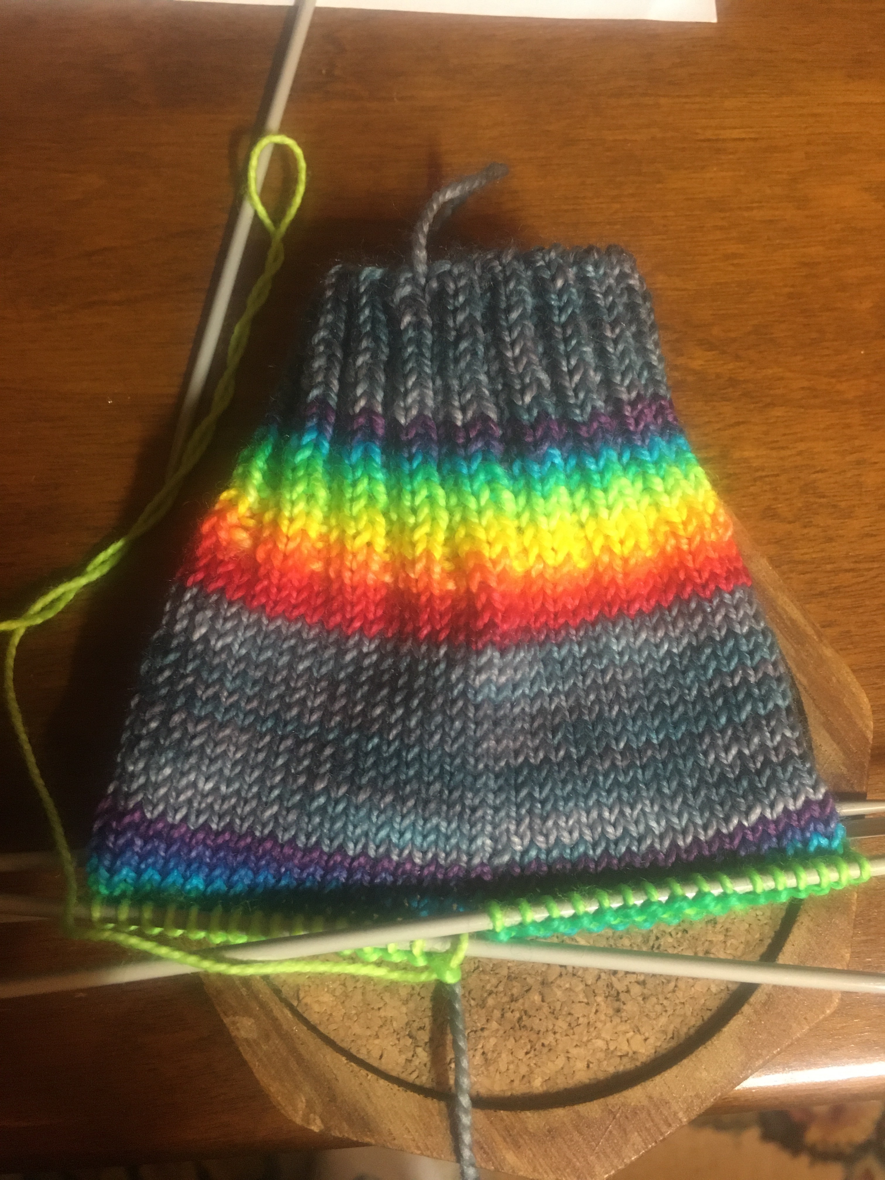 I have only spent a small amount of time knitting the Rainbow sock. I’ve been distracted.